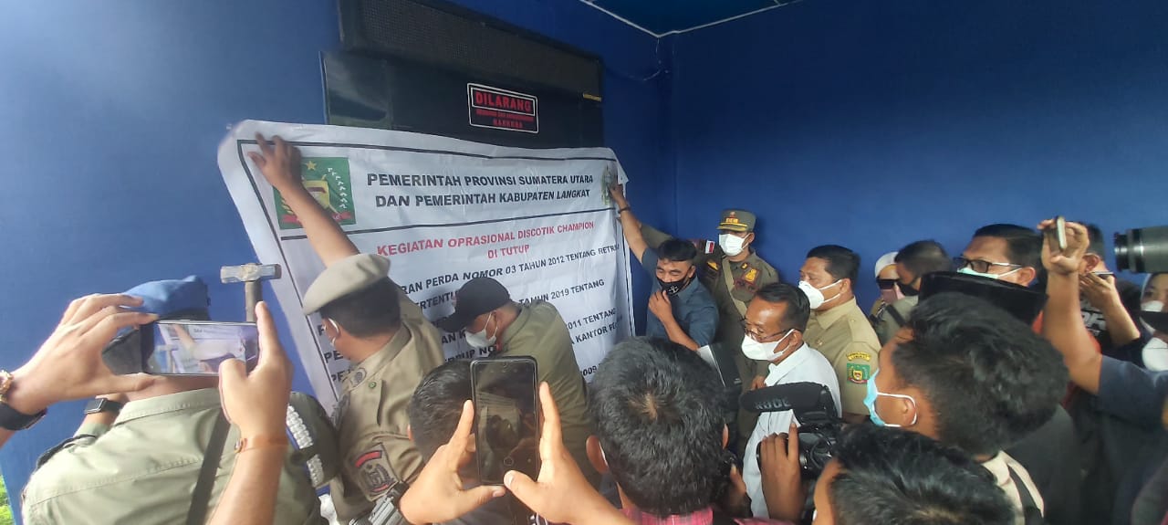LANGKAT — LIPUTAN68.COM — Diskotik Blue Star Champion di Jalan Sungai Musi Tanah Seribu Binjai Kloneng, Kabupaten Langkat ditutup paksa karena tak berizin oleh Tim Gabungan Pemprov Sumut, Pemkab Langkat, bersama TNI/Polri, DPRD, dan Badan Narkotika Nasional, Senin (10/1/2022).