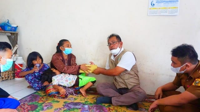 SITINJO – LIPUTAN68.COM – Bupati Dairi Dr. Eddy Keleng Ate Berutu menyerahkan sumbangan dana untuk biaya keperluan selama pengobatan Juanda Sihombing yang membutuhkan kaki palsu, Senin (7/2/2022) di kediaman Juanda Sihombing Perumnas Lae Mbulan.