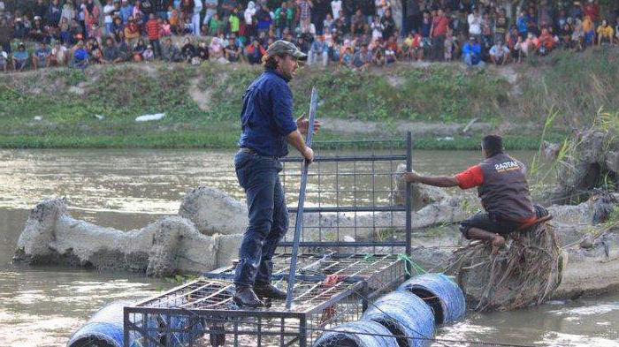 “Anaknya buaya ini saya tangkap disana (tengah sungai, red) pakai perahu rakitan saya, Sudah 4 hari saya tangkap anaknya buaya ini,” ungkap Tili, Selasa (8/2/2022).