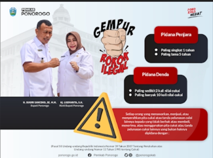 Ponorogo, liputan 68.com-Masih tingginya peredaran rokok ilegal, diantaranya disebabkan oleh kenaikan cukai rokok.