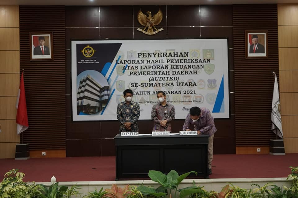 Beberapa waktu lalu, tim pemeriksa dari BPKP Perwakilan Sumatera Utara telah berjibaku dalam memeriksa dan melakukan audit terhadap laporan keuangan kami melalui pemeriksaan interim dan terperinci, kami menyampaikan terimakasih yang sebesar-besarnya atas segala saran, koreksi, maupun rekomendasi dan langkah-langkah yang disampaikan kepad kami untuk kemudian kami akan pedomani dalam pelaksanaan perbaikan tatakelola administrasi pertanggungjawaban keuangan kami kedepannya, ucap Bupati dalam sambutannya.