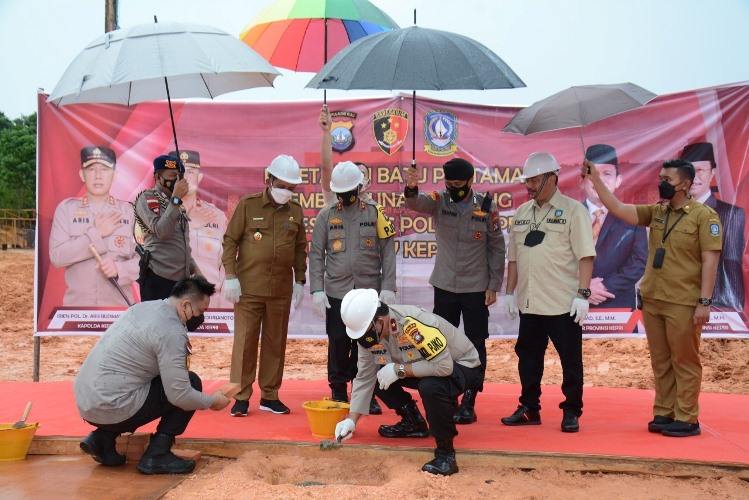 Dalam sambutannya Gubernur Provinsi Kepri H. Ansar Ahmad, SE, MM mengatakan, Hari ini mulai melaksanakan kegiatan peletakan batu pertama sebagai tanda dimulainya pembangunan Gedung Direktorat Kriminal Khusus Polda Kepri.