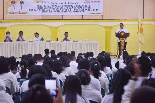 Sebanyak 375 orang pegawai pemerintah dengan perjanjian kerja formasi tahun 2021 resmi menerima SK Pegawai Pemerintah Dengan Perjanjian Kerja (PPPK) di lingkungan pemerintah Kabupaten Dairi yang terdiri dari tenaga guru yang merupakan eks honorer kategori 2, guru non ASN yang terdaftar d Dapodik, Guru Swasta yang terdaftar di Dapodik dan lulusan PPG yang sudah melalui tahapan seleksiĀ  sejak awal Juli 2021 lalu.