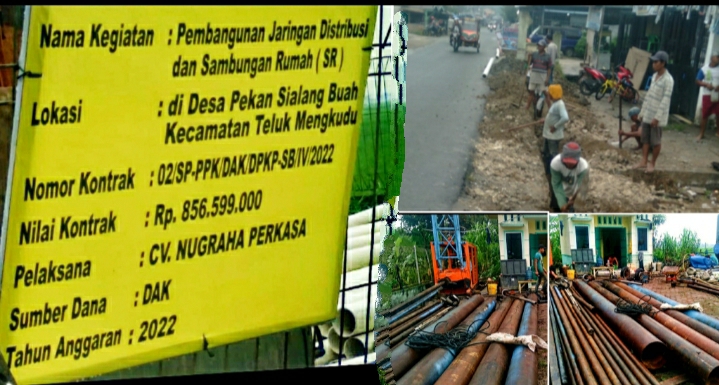 SERDANG BEDAGAI – LIPUTAN68.COM – Pengerjaan pembangunan Jaringan Distribusi dan Sambungan Rumah (SR) yang bersumber dari Dana Alokasi Khusus (DAK) sebesar Rp. 856.899.000,- oleh CV Nugraha Perkasa di Desa Pekan Sialang Buah Kecamatan Teluk Mengkudu Kabupaten Serdang Bedagai (Sergai) tidak tercantum Volume Panjang dan Lebar pada pengerjaan tersebut, Selasa (28/6/2022).