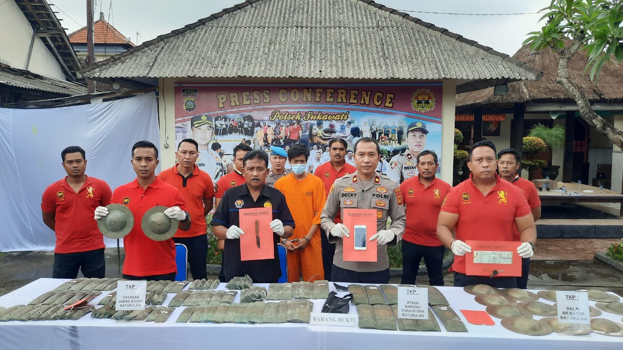 Menurut Kapolsek Sukawati Kompol Decky Hendra Wijaya, aksi pencurian dilakukan pelaku pada Jumat (19/8/2022) sekitar pukul 08.00 Wita di gudang penyimpanan gambelan gong milik yayasan yang berlokasi di Batubulan, Sukawati, Gianyar.