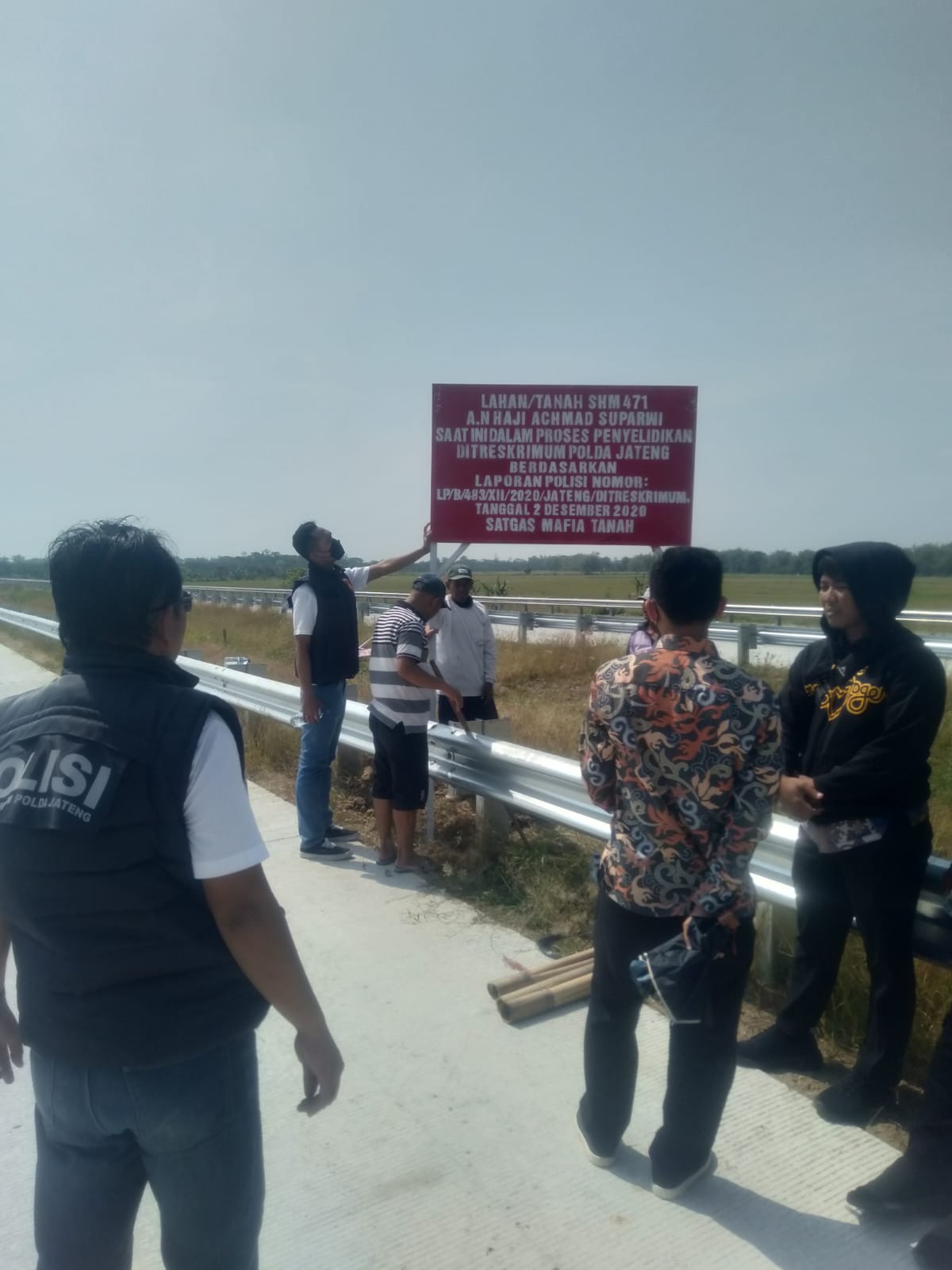 Akhirnya, Satgas Mafia Tanah Subdit 2 Harda Bangtah Ditreskrimum Polda Jateng turun tangan, dengan memasang plang di jalan tol Semarang- Demak, Rabu, 31 Agustus 2022.