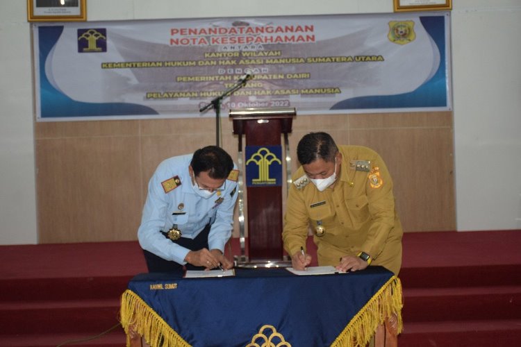 Dalam kerjasama tersebut, Pemkab Dairi dan Kantor Wilayah (Kanwil) Kemenkumham Sumut menjalin sinergitas dalam pelaksanaan hukum dan Hak Asasi Manusia (HAM) di Dairi.
