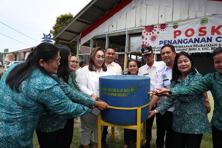 PAKPAK BHARAT |ARUSMALAKA.COM – Bupati Pakpak Bharat, Franc Benrhard Tumanggor menyerahkan puluhan tong sampah di Desa Siempat Rube II, Kecamatan Siempat Rube (12/10/2022). Sebanyak 40 unit tong samapah dibagikan di Desa ini guna mendukung salah satu Program Pokok PKK yakni Perilaku Hidup Bersih dan Sehat yang sedang dicanangkan di Desa ini.