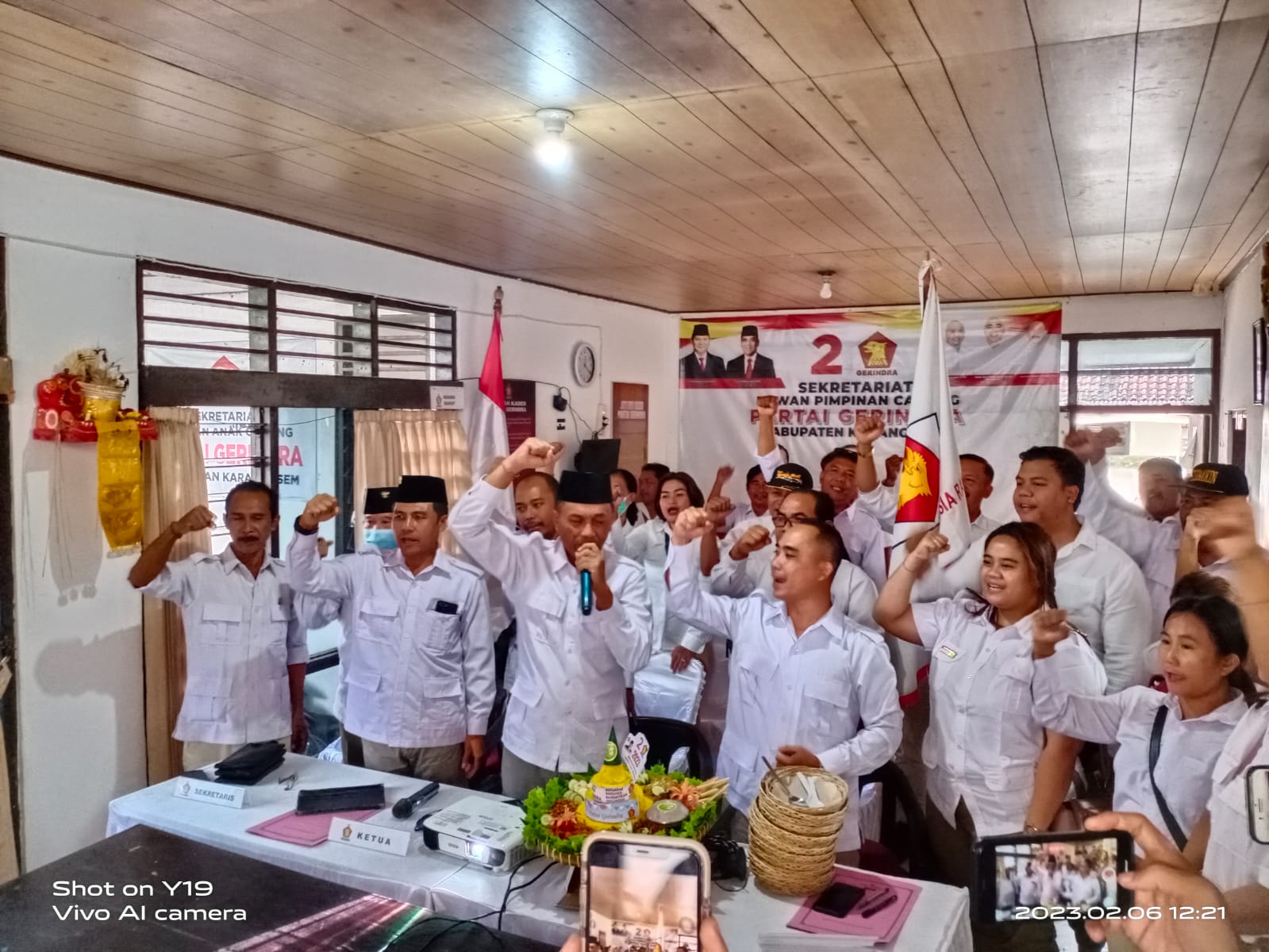 Peringatan Hari Jadi Partai Gerindra di Kabupaten Karangasem usai mengikuti Daring di Sekretariat DPC Partai Gerindra dimeriahkan dengan pemotongan tumpeng yang dihadiri langsung oleh Ketua DPC Partai Gerindra I Nyoman Suyasa,ST, seluruh Ketua PAC serta Kader-Kader Gerindra yang akan maju di Pemilu 2024 mendatang.