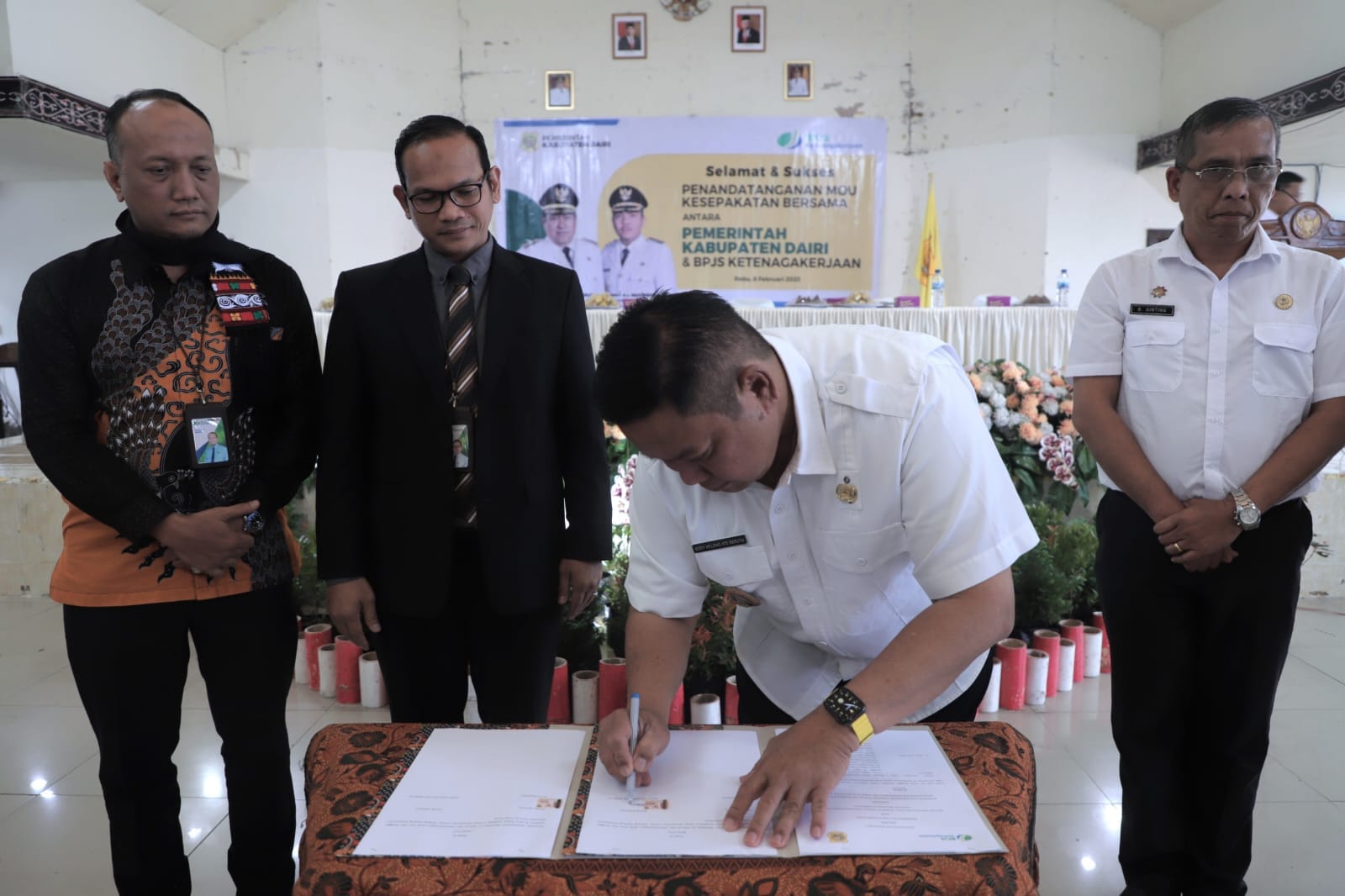 Kerja sama ini dituangkan dalam bentuk Memorandum Of Understanding (MoU) yang diteken Bupati Dairi Eddy Berutu dan Kepala BPJS Ketenagakerjaan Medan dr. Suci Rahmat di Gedung Balai Budaya, Sidikalang, Rabu, 8 Februari 2023.