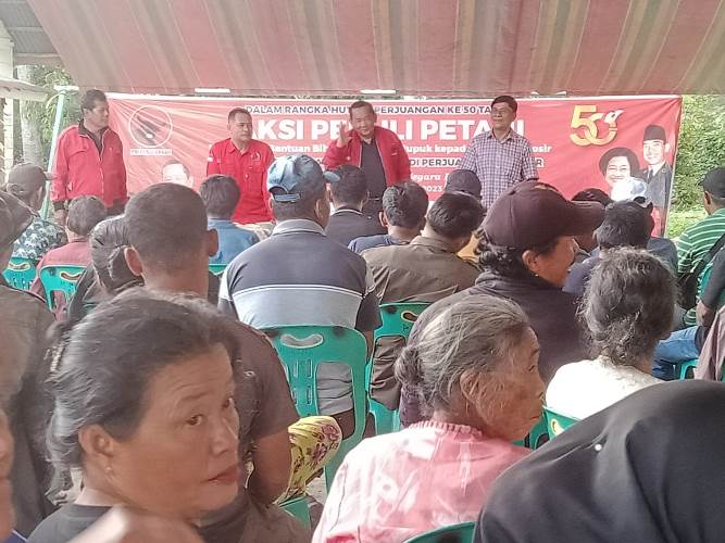 SAMOSIR – LIPUTAN68.COM – DPD PDI Perjuagan Provinsi Sumatera Utara bersama DPC PDI Perjuangan Kabupaten Samosir laksanakan Aksi Peduli Petani dengan membagikan Bibit Jagung Unggul Pioner P-32 dan Pupuk Ponska di Kecamatan Palipi dan Kecamatan Nainggolan Kabupaten Samosir pada Minggu (5/3/2023).