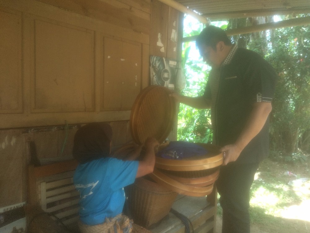 Dengan cekatan, Gagarin juga menggayutkan selendang kecil ke punggung si nenek itu untuk mengikat tampah agar bisa nangkring dan tidak terjatuh. “Pun mbah, ngatos-atos nggeh (sudah nek, hati-hati ya),” pesan Gagarin dengan nada lembut sebagai ungkapan rasa kasih sayang seorang pemimpin kepada rakyatnya yang memang tengah membutuhkan bantuannya.