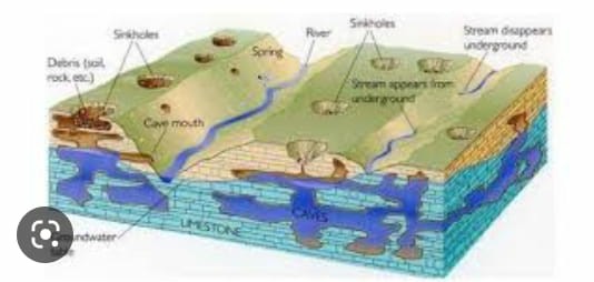 Drainase dibawah tanah/batuan ini mengakibatkan permukaan tanah nampak seakan kering, jarang ditemukan bahkan tidak nampak adanya sungai maupun danau.