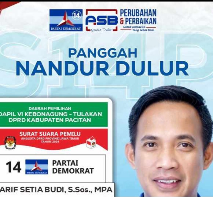 Pacitan,Liputan 68.com- Singkat namun penuh makna, “Nandur Dulur, Urip Iku Nguripi”. Begitulah tagline yang selama ini menjadi semangat bagi Arif Setya Budi dalam meniti karir politiknya.