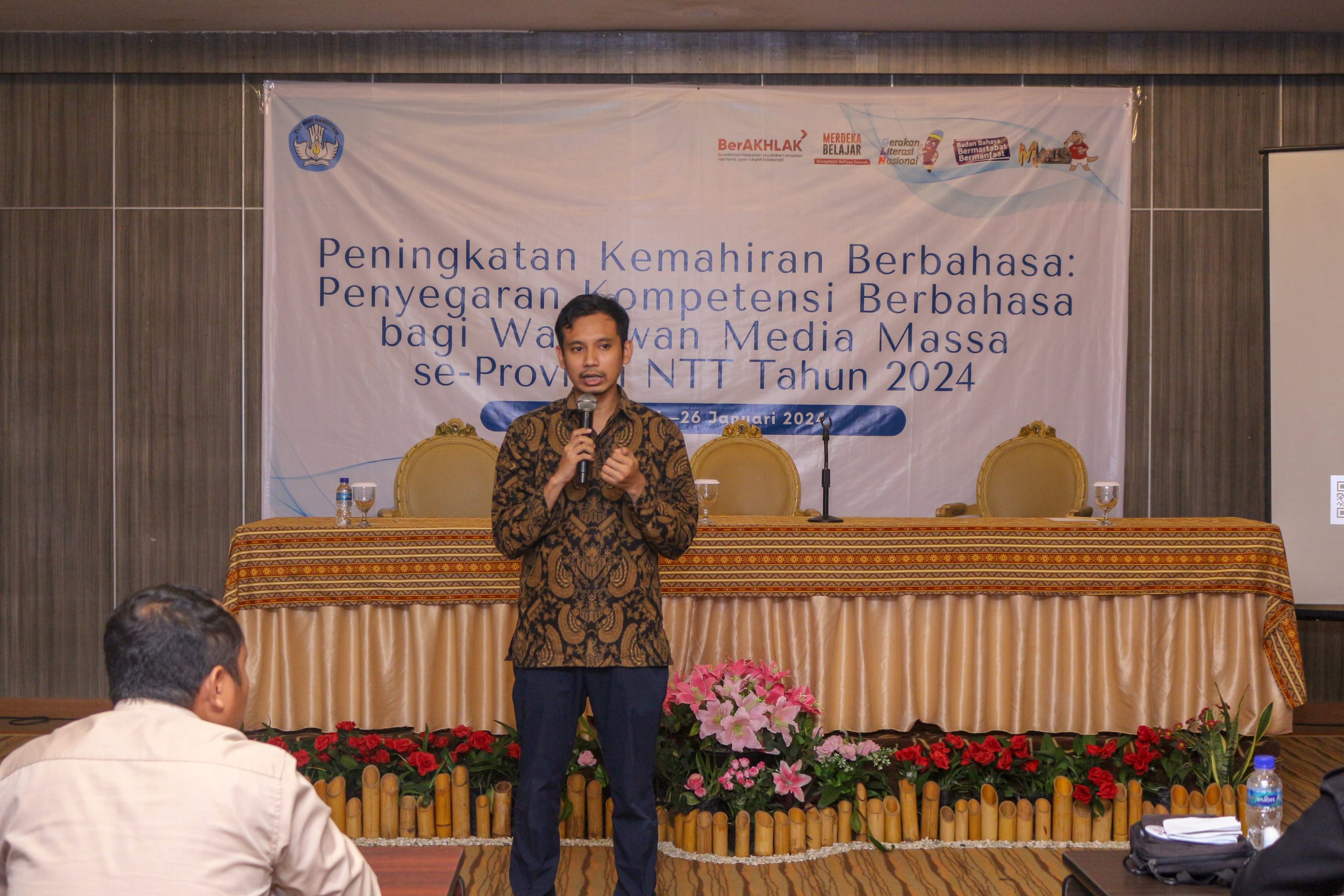 Pengkaji Bahasa dan Sastra Kantor Bahasa Provinsi NTT, Rafly Ubit Pinka, S.S. saat menyampaikan data