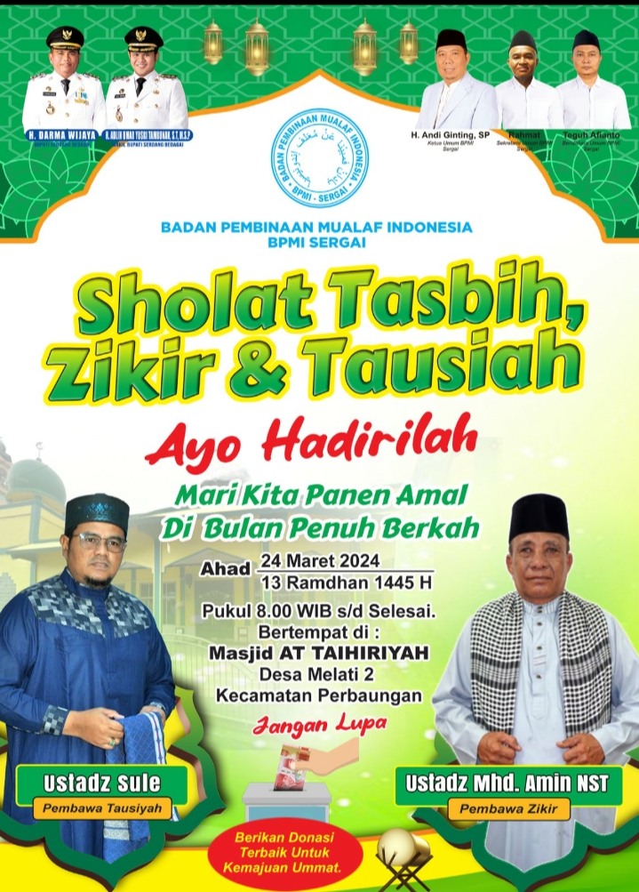Yang akan dilaksanakan di Masjid AT TAIHIRIYAH Jalan Waringin Desa Melati II Kecamatan Perbaungan Kabupaten Serdang Bedagai.