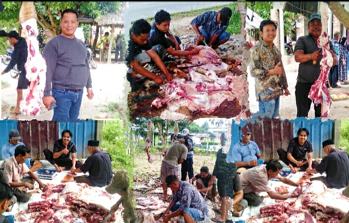 SERDANG BEDAGAI – LIPUTAN 68.COM – Rusiadi SH Kepala Desa (Kades) Pematang Sijonam Kecamatan Perbaungan Kabupaten Serdang Bedagai (Sergai) Laksanakan Pemotongan Hewan Qurban pada Idul Adha 1445 H 2024 yang dibagikan kepada para masyarakat Dusun I Fortuna bertempat Mushola Nurul Hidayah Dusun I, Senin (17/6/2024) Setelah Sholat Idul Adha.