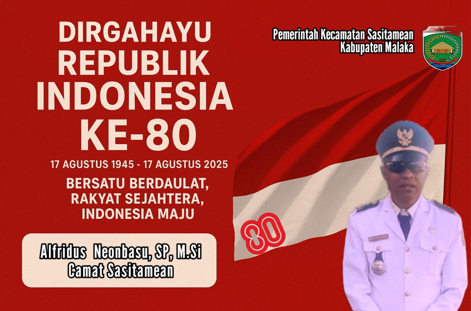 Ucapan Dirgahayu Republik Indonesia ke-80 dari Camat Sasitamean, Alfridus NeonbasuLiputan6817 Agustus 2025Liputan DAERAH BAGIKAN KE :