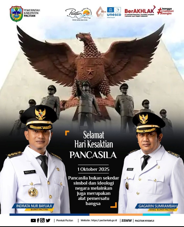 “Peringatan ini bertujuan untuk memberikan penghargaan setinggi-tingginya kepada para pahlawan revolusi yang berkorban demi mempertahankan Pancasila,” kata Enggar usai mengikuti gelar upacara Hari Kesaktian Pancasila di Pendopo Pemkab Pacitan, Rabu (1/10/2025).