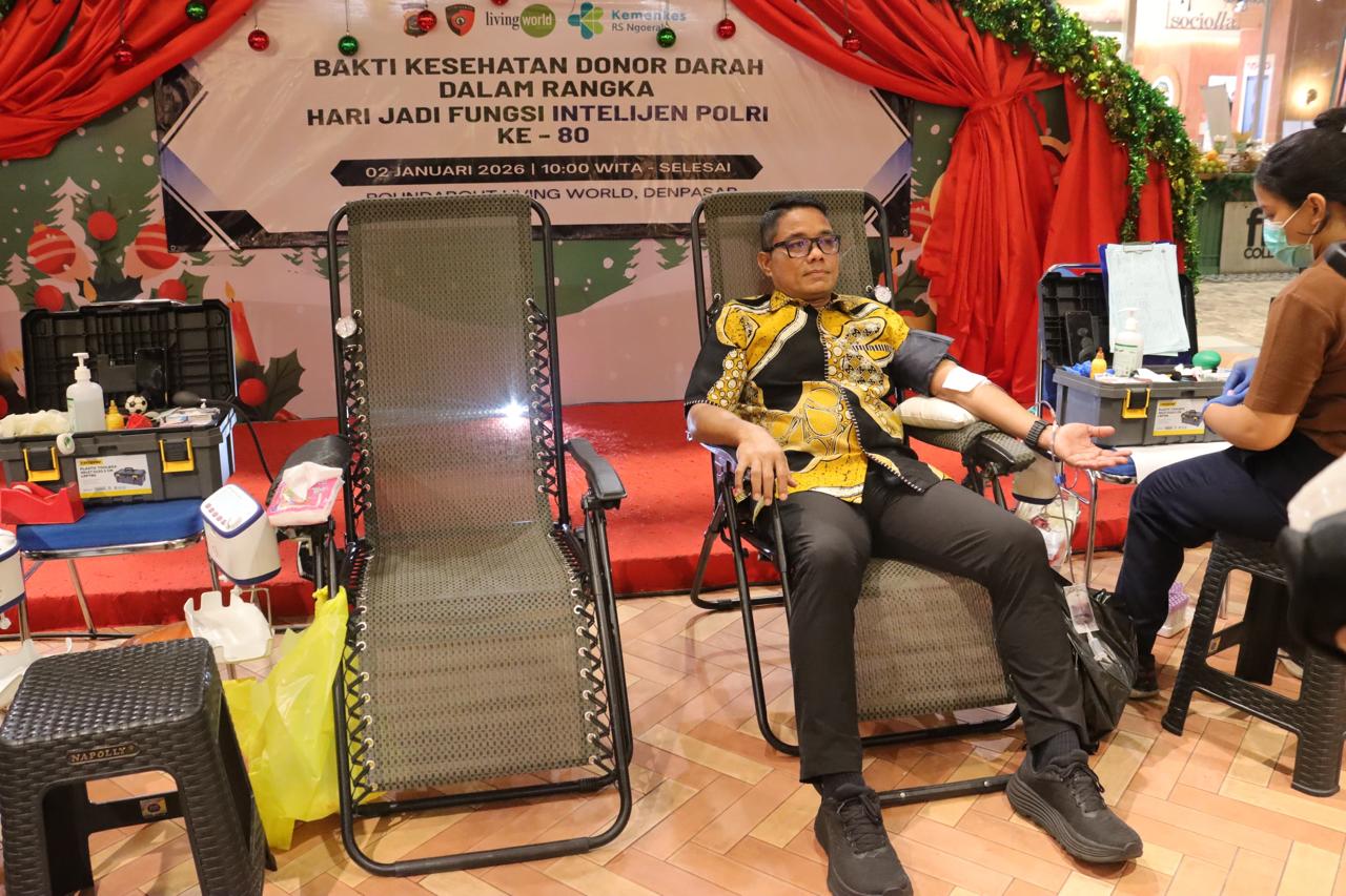 Pada hari yang sama, Ditintelkam Polda Bali juga menggelar bakti kesehatan berupa donor darah di Nusantara Market, Mall Living World, Denpasar Utara. Kegiatan ini diikuti oleh ratusan peserta dari personel Polda Bali, satuan kerja, serta masyarakat umum sebagai kontribusi kemanusiaan dalam membantu ketersediaan stok darah.